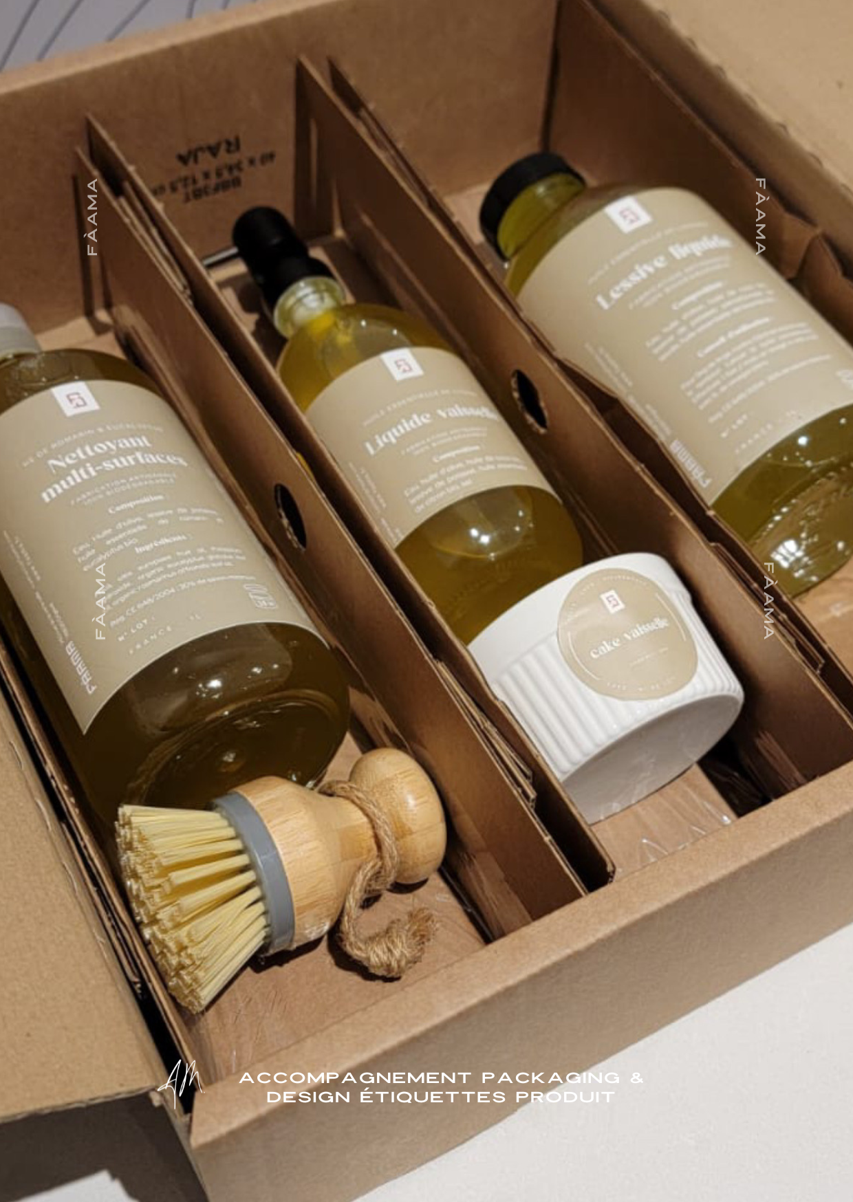 - Avoir un logotype et une identité visuelle complète sans cela impossible pour moi de penser le design des éléments qui constituent le packaging et les autres supports.
